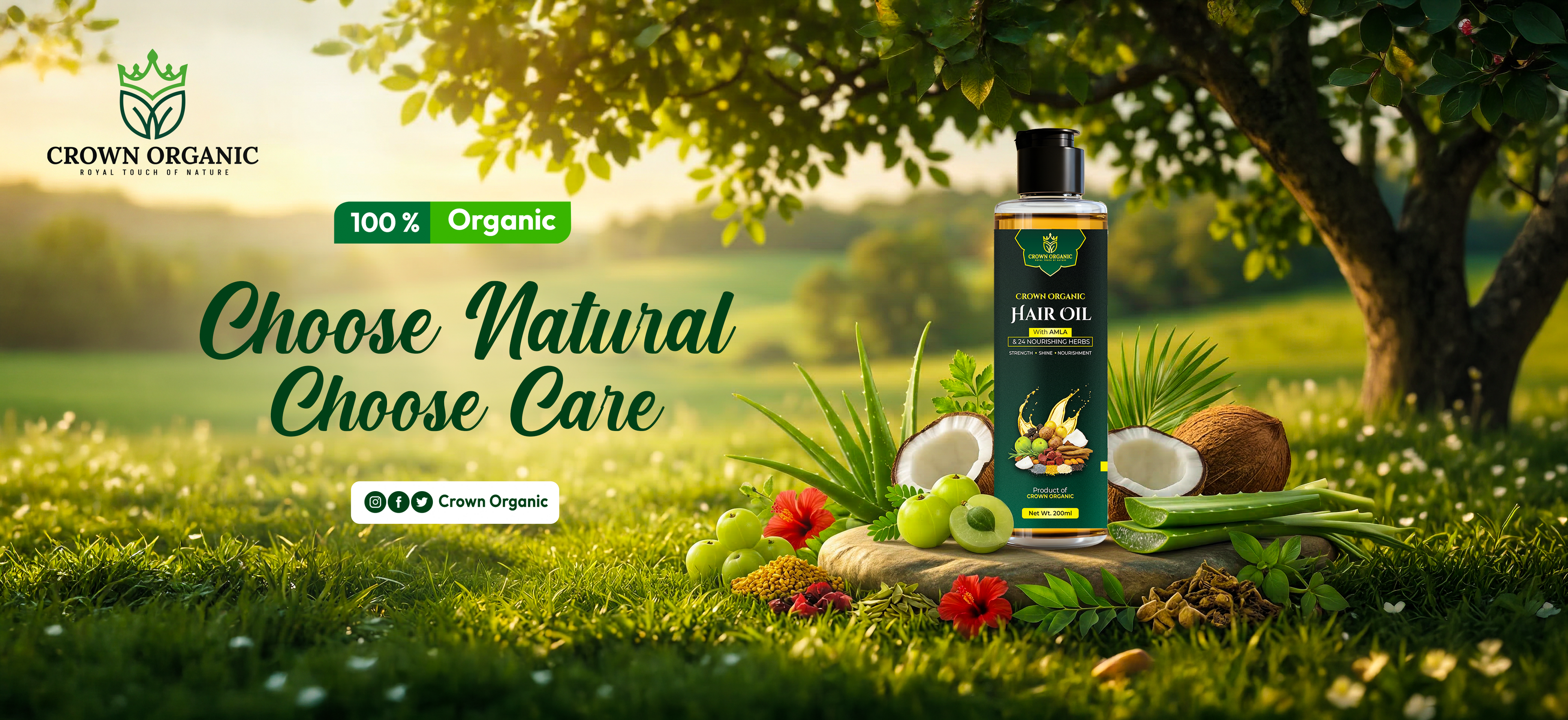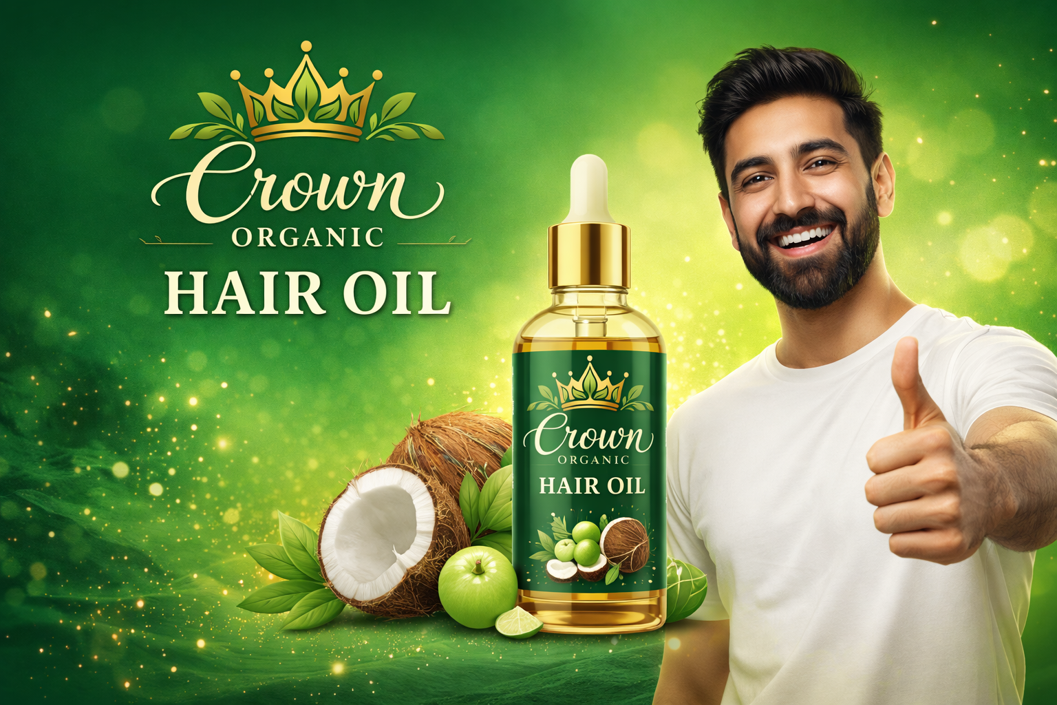 Crown Organic Hair Oil is a premium natural formula designed to nourish the scalp and strengthen hair from the roots. Its lightweight, non-sticky texture absorbs quickly and helps reduce dryness, frizz, and hair fall.